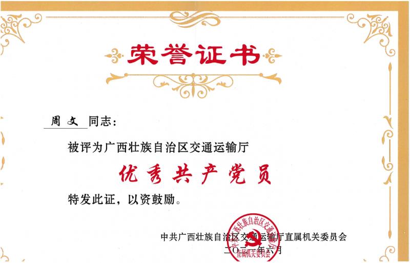 1992年12月參加工作以來,周文先後在輪機員、船長等崗位任職,現任beat365在线登录(以下簡稱西南海線)陽朔航道站站長。工作近30年來,随着西南海線不斷的改革與發展,他精進不休,在汗水彙集的漓江上,他始終秉持共産黨人的初心,踔厲奮發做好航道航标維護工作,将事業之舟駛向理想彼岸,年維護航标達到14600座天,标燈730盞天,年均更換标志110餘座,年維護工作達到“3個百分百”:航道維護水深年保證率100%,标志維護正常率100%,标燈維護正常率100%,所維護的轄區航道從未發生過航道航标維護責任事故。因工作突出、思想先進,他于2019年和2021年兩次獲評自治區交通運輸廳優秀共産黨員,多次在本單位獲評先進、優秀、嘉獎等榮譽表彰。