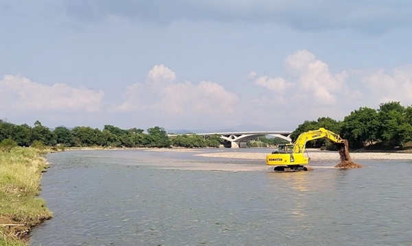 因淤積量大,經讨論研究确定“先通後暢”施工方案,即在當天先挖出一條能保證船舶通行的應急航道,之後再按照Ⅶ級航道維護尺度标準要求進行疏浚完善。随後,廣西港航03205運載船裝載挖掘機趕到現場,在完成航道測量、抛設施工标志等工前工作後,17:05,挖掘機正式開展桃花灘應急搶通疏浚施工。19:30,應急航道疏通完成,目前正在按Ⅶ級航道維護尺度标準繼續搶通施工中。