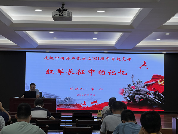 為弘揚偉大長征精神,讴歌黨的光輝曆程、發揚黨的優良傳統,該中心主任為中心全體在職黨員上《紅軍長征中的記憶》黨史學習内容專題黨課,帶領全體黨員幹部回顧了長征這一人類曆史上的壯舉。黨課圍繞“長征出發的曆史背景、長征中的記憶、以偉大長征精神為動力走好新時代長征路”三個方面展開詳細講解,引導全體黨員幹部在推進黨史學習教育常态化長效化過程中,弘揚紅色基因,赓續紅色血脈,從偉大建黨精神中汲取奮進力量。