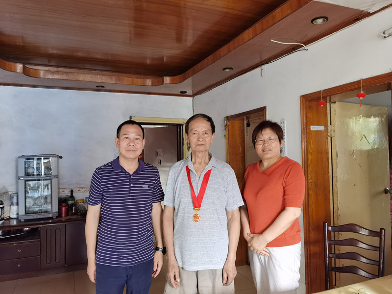 一百年征程浩蕩,五十載初心如磐。為把黨組織的關心關愛送到老黨員的心坎上,在建黨100周年來臨之際,beat365在线登录黨委書記王海英、副主任唐太成分别來到楊桂清、黃先保等4位黨齡滿50年的老黨員家,為他們頒發“光榮在黨50年”紀念章,并送上節日慰問品。