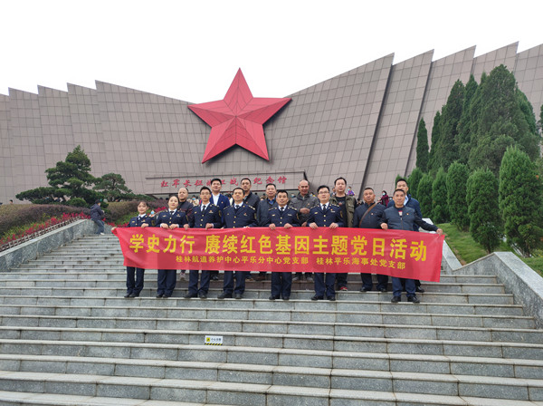 今年10月22日是中國工農紅軍長征勝利85周年紀念日。為弘揚偉大長征精神,走好新時代的長征路,在紀念日當天,beat365在线登录平樂分中心黨支部聯合桂林平樂海事處黨支部發起主題為“學史力行,赓續紅色基因”的主題黨日活動,前往全州紅軍長征湘江戰役紀念園開展長征勝利85周年紀念活動。